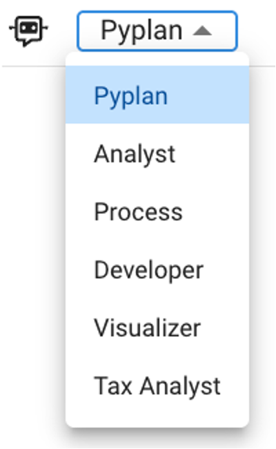 Pyplan includes several built-in agent types designed to assist users across different workflows. These agents come pre-configured with specialized roles, optimized behaviors, and access capabilities tailored to their purpose. They simplify user interactions, automate complex tasks, and guide users through model logic, analysis, or interface creation.